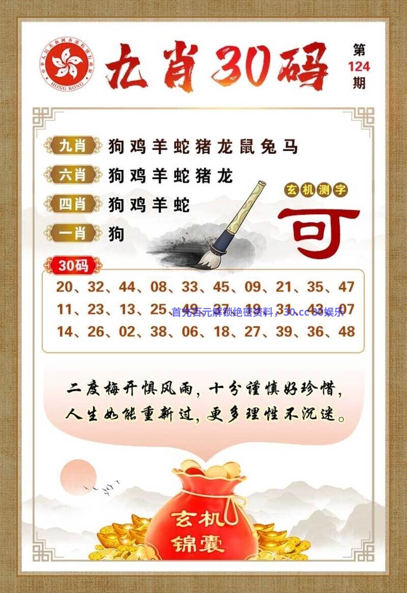 124期凤凰于飞【九肖30码图】已公开